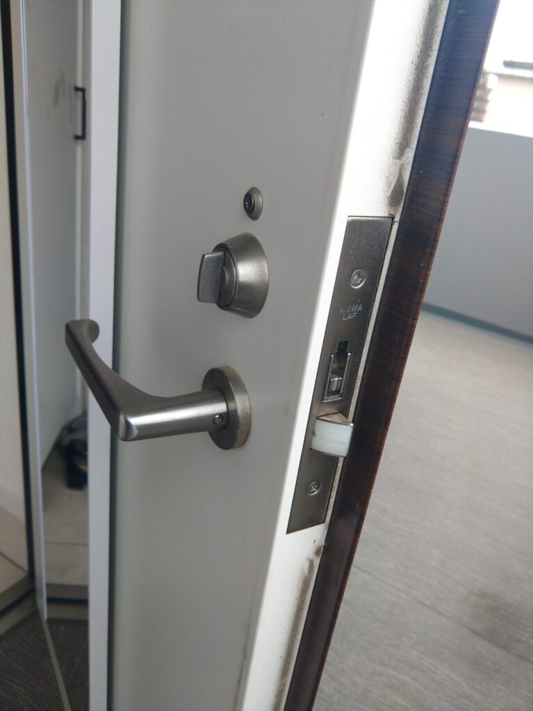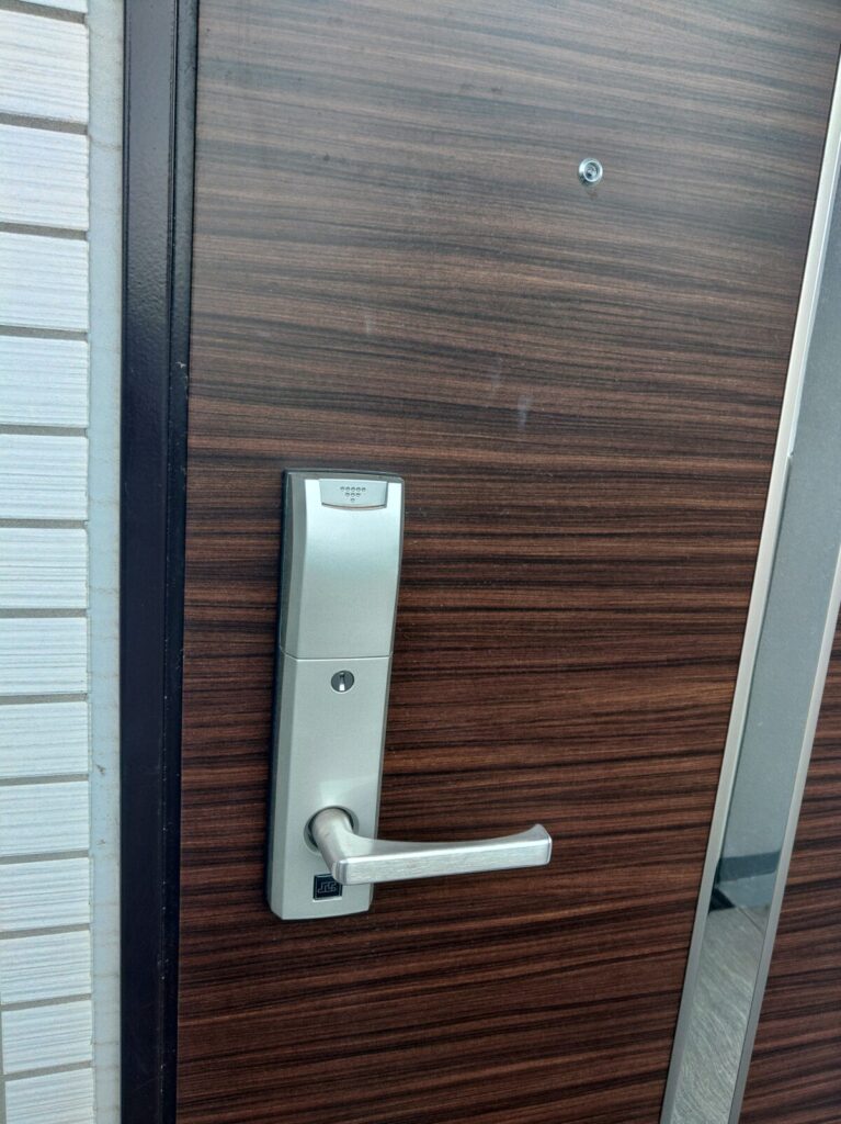 通常サムターン解錠で完了しましたが、カード挿入口など玄関ドアの風雨汚れが激しいのが目に付きます。