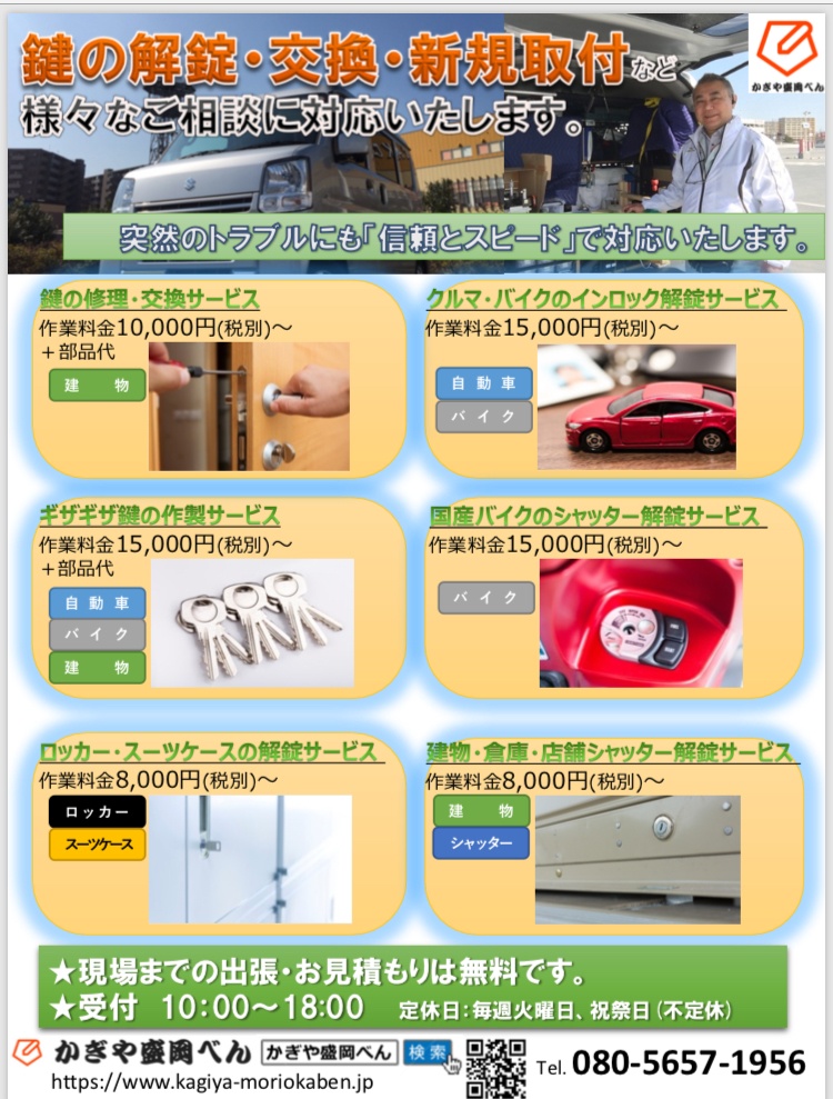 チラシをご参照ください 2019-04-08 最終更新日時 : 2025-05-29 かぎや盛岡べんチラシ(フライヤー)を作成しました。 こちらもご参考下さい。 moriokaben-flyer.pdf